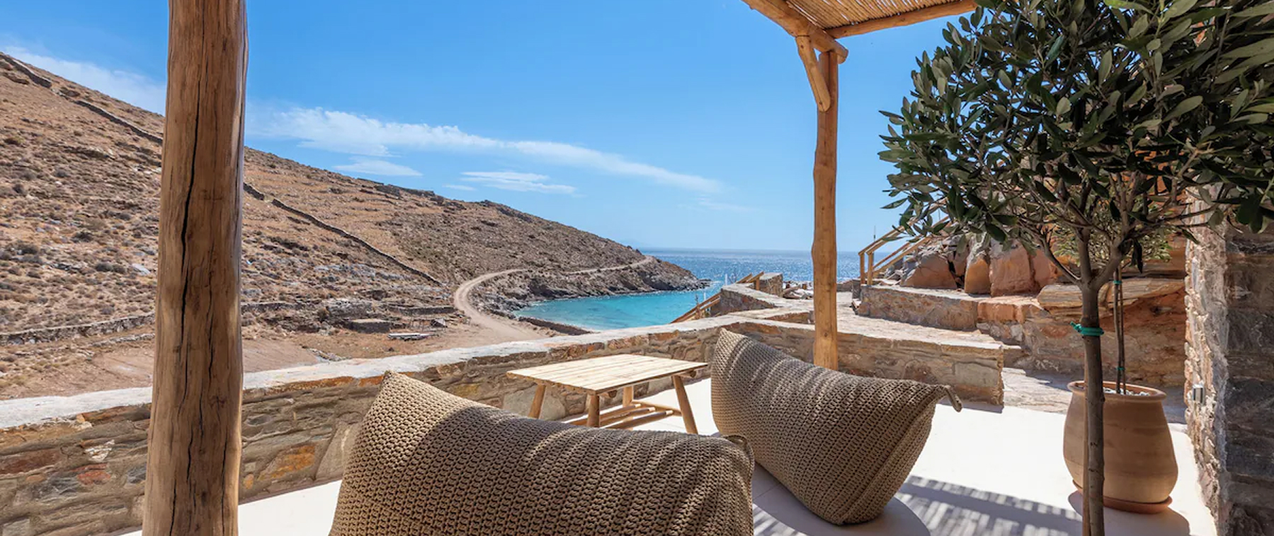 This unique property lies in a private bit of heaven, off the beaten track of Kea, blissfully remote with just a couple of beaches and an ancient site.